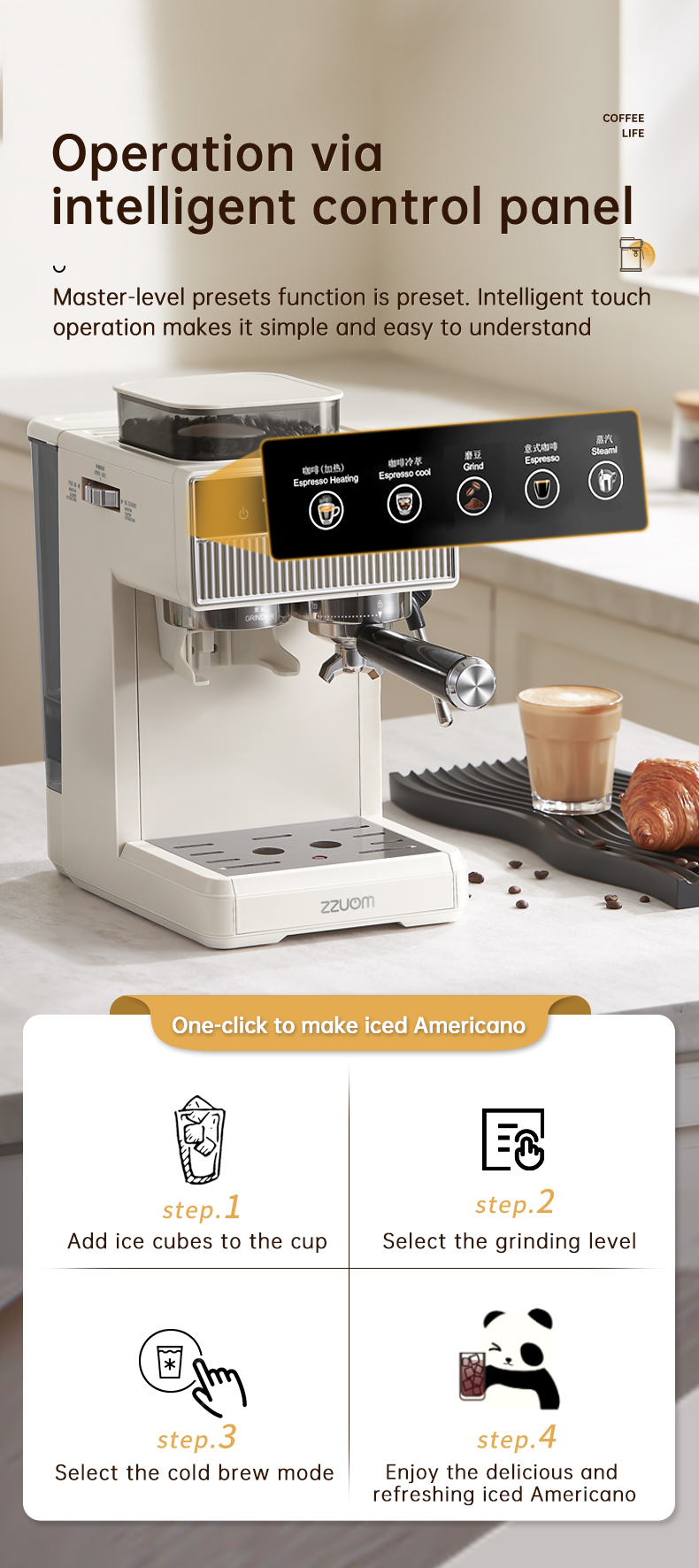 Italian-style Grinder Integrated Coffee Machine